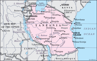 | Ikarita ya Tanzania hanerekanwa ibihugu bihana nayo imipaka |